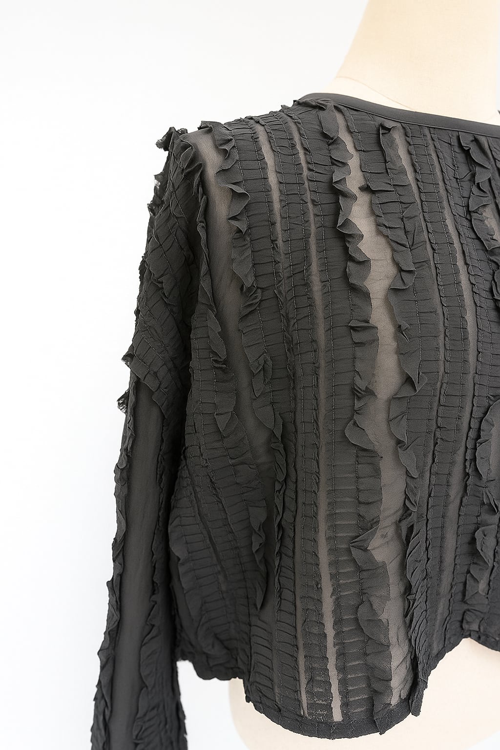 立体的なプリーツデザインが目を惹くブラウス。