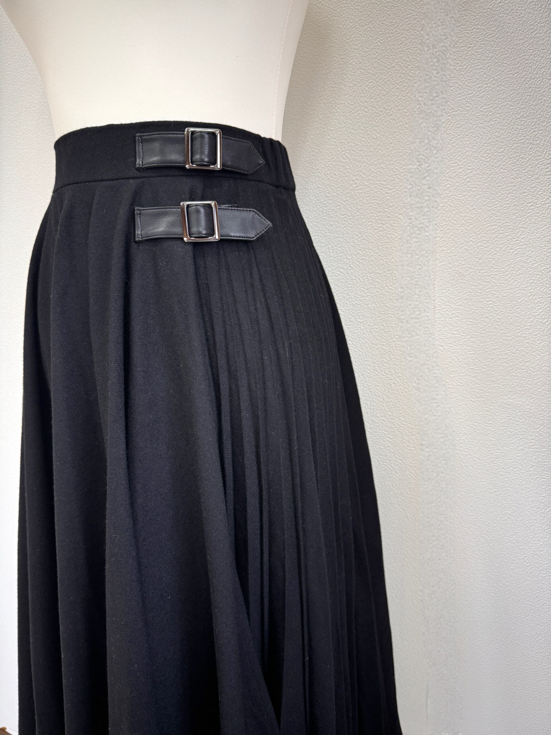 プリーツウールスカート BLACK